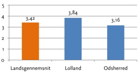 På et indeks fra 1-5 angiver foreningerne i Lolland Kommune, at de har væsentligt sværere ved at rekruttere frivillige end foreningerne i Odsherred Kommune og i resten af landet. Indekset er beregnet ud fra svarene på 11 spørgsmål om rekruttering af frivillige.
